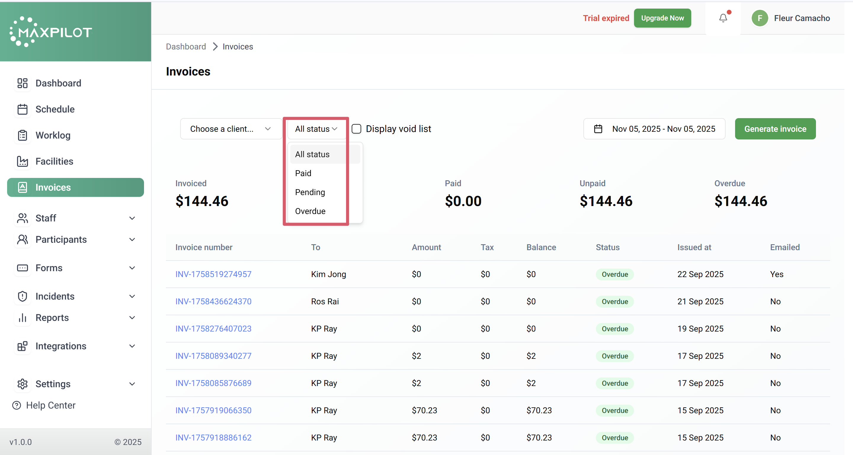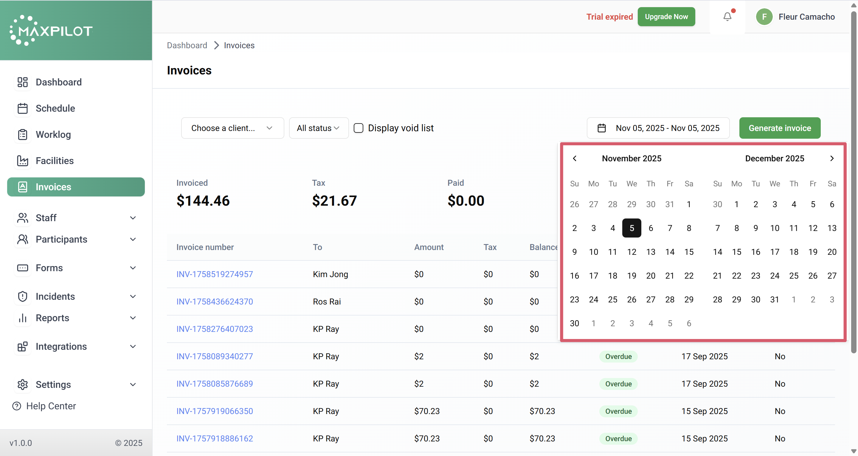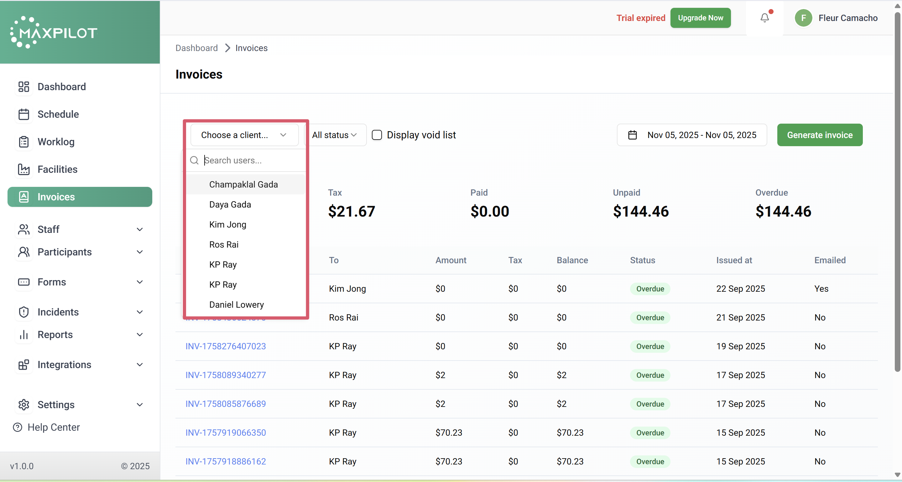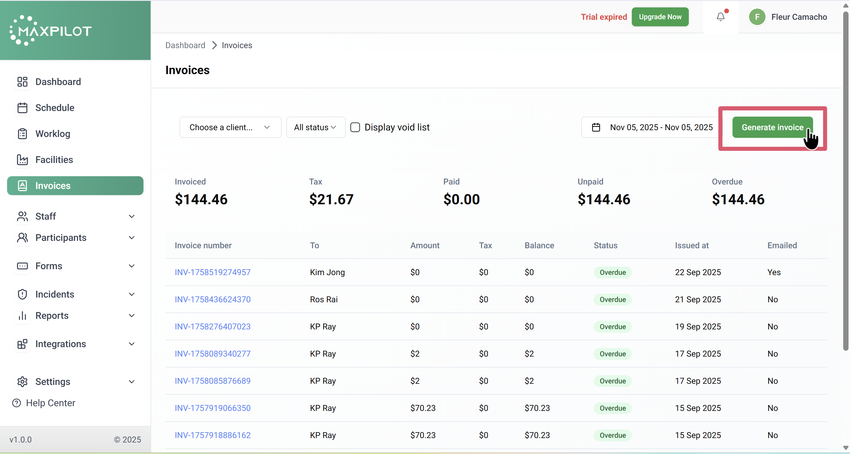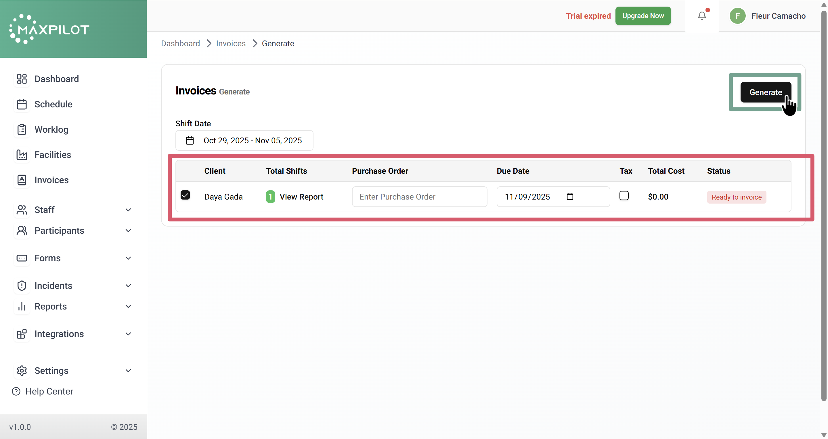 Generating an invoice in MaxPilot allows you to bill participants efficiently and manage all financial records in one place. Follow these simple steps to create an invoice from the participant’s shift details.